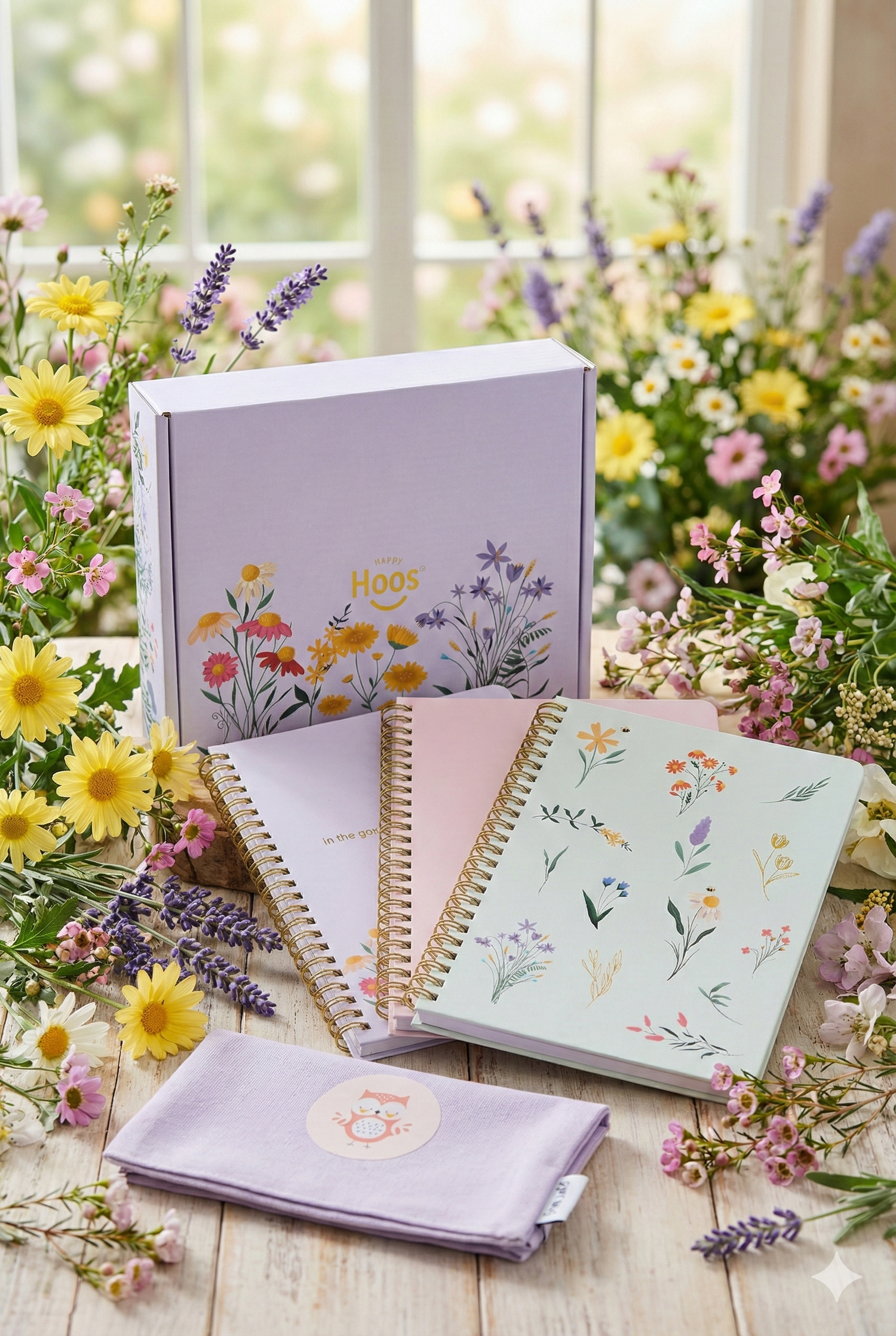 Spring Blossom Spiral Notebook Gift Set with Bag and Box