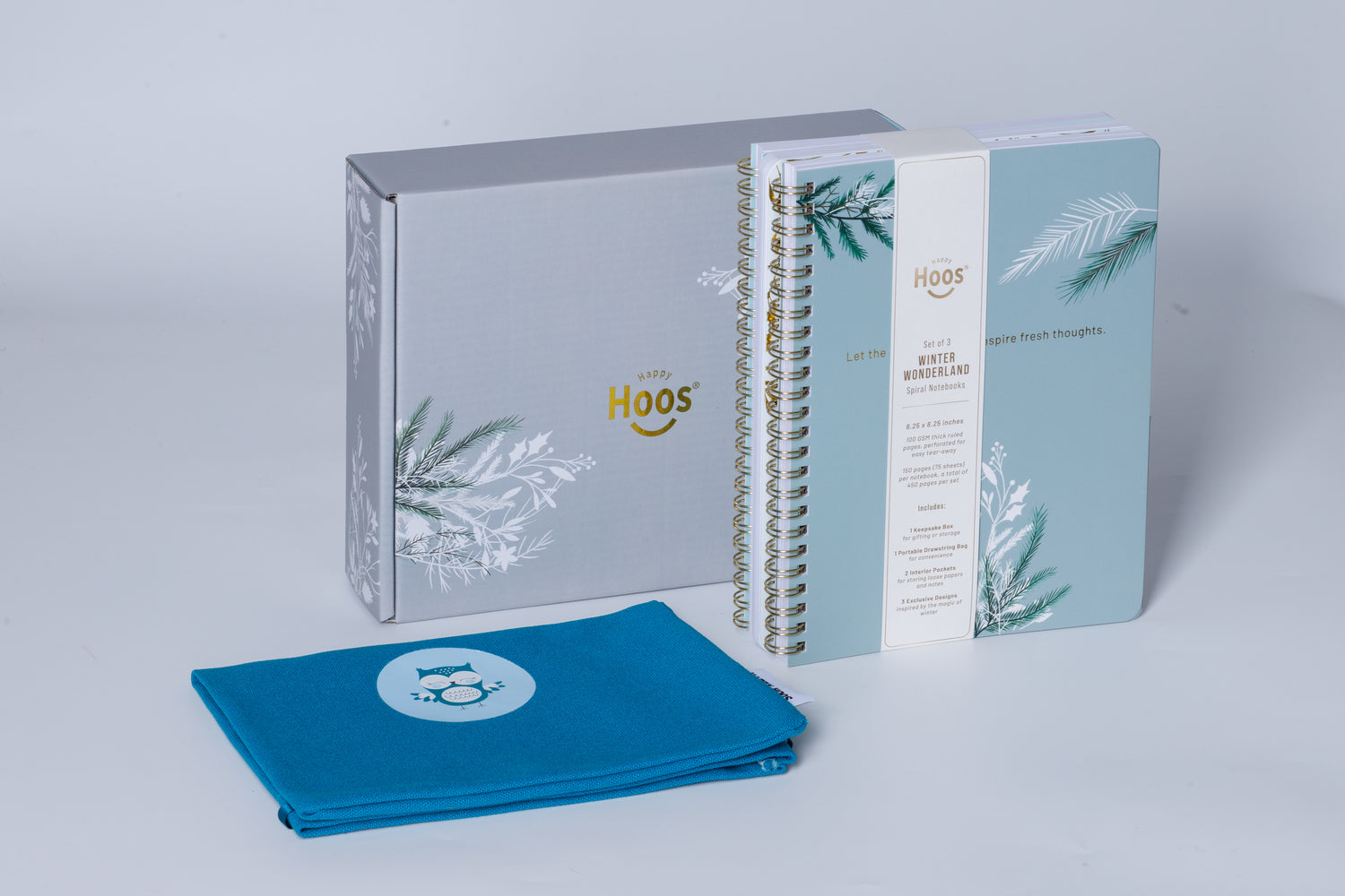 Winter Wonderland Spiral Notebook Gift Set with Box and Bag